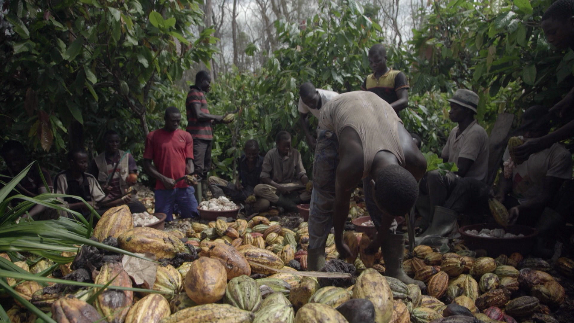 Au coeur des forêts protégées de Cote d’Ivoire, des enfants venus du Burkina Faso voisin, poussés par la faim et la sécheresse, travaillent gratuitement contre de la nourriture : machettes tranchantes, lourdes charges, épandage de glyphosate sans protection... Au bout de plusieurs années d ́esclavage, ils peuvent espérer recevoir une parcelle à cultiver pour eux-mêmes. Ces plantations illégales dont ils sont prisonniers continuent de grignoter la forêt primaire déjà réduite à peau de chagrin. Esclavage, déforestation massive, intraçable, ce cacao criminel entre sans difficulté dans le circuit commercial légal et certifié pour se retrouver dans les rayons de nos supermarchés.